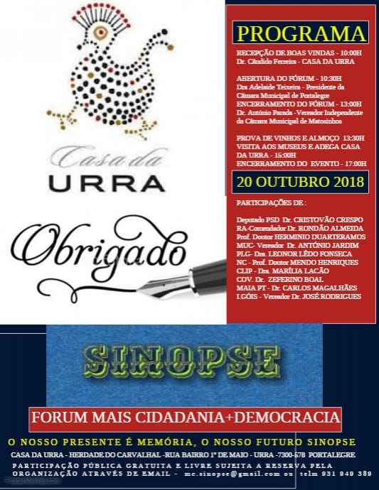 O Fórum Mais Cidadania+Democracia, decorreu este Sábado dia 20 de Outubro, na Casa da Urra - Urra - Portalegre.